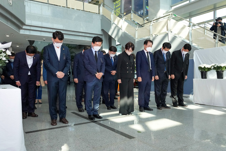 이날 국주영은 의장과 의원들은 전북도청 1층 공연장에 설치된 합동분향소를 찾아 헌화하고 묵념했다.