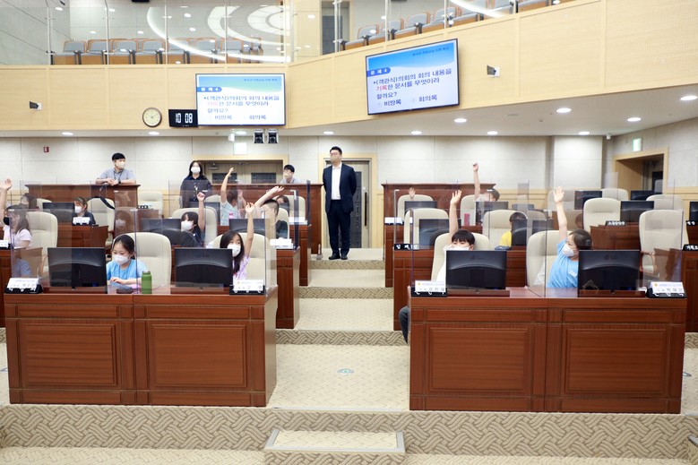 주요 프로그램으로 의회 홍보 동영상 시청과 2분 발언, 교육행정질문, 표결 등 의회체험, 투표게임(선거관리위원회 민주주의 교실 프로그램)을 진행했다.