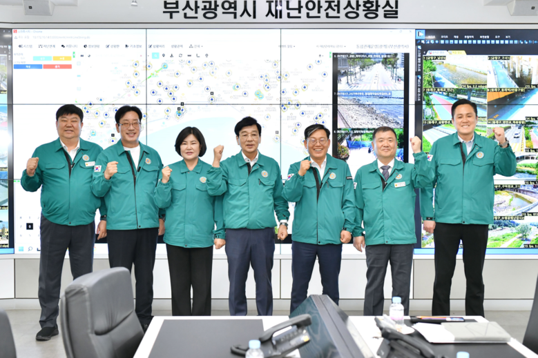 첫 번째로 부산시 재난안전상황실을 찾아 CCTV 감시체계, 도시침수 통합정보시스템, 스마트 빅보드 등 주요 대응 인프라를 살폈다. 재난 발생 시 정보 공유와 전파 체계, 유관기관 협력 등을 집중 점검했다.