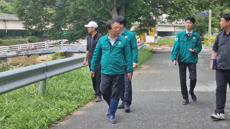 이어 대곡리 맹곡천 수해현장, 세종벤처밸리산업단지 진입도로 개설공사 현장 등을 방문해 하천주변 빗물받이, 배수로 등 배수시설, 건설현장 안전관리 및 비상대응체계 등을 꼼꼼히 점검했다.