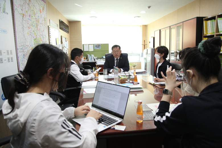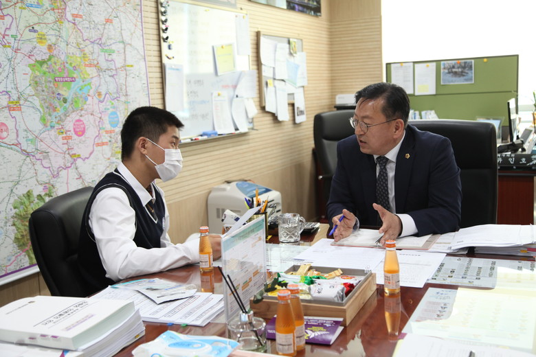 [세종 세계타임즈=이채봉 기자] 세종특별자치시의회 유인호 의원(보람동, 더불어민주당)은 19일 세종시 상가 공실률 문제를 수행과제로 선정하고 의회에 방문한 해밀고등학교 1학년 이용현 학생 외 3명과 유쾌하고 당돌한 인터뷰를 진행했다.