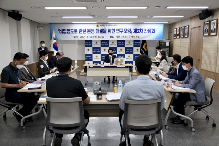 [세종=세계타임즈 이채봉 기자] 세종특별자치시의회 ‘비법정도로 관련 분쟁 해결을 위한 연구모임(대표 임채성 의원)’은 의회청사 대회의실에서 30일 3차 간담회를 가졌다.