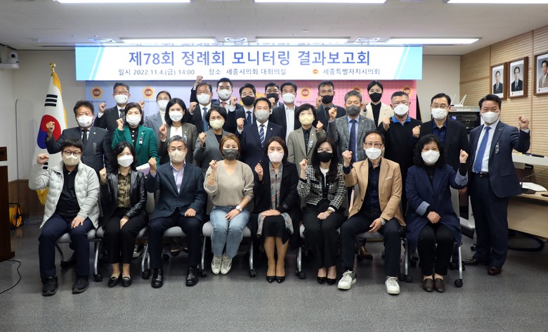 [세종 세계타임즈=이채봉 기자] 세종특별자치시의회(의장 상병헌)는 4일 오후 의회 청사 1층 대회의실에서 ‘제78회 정례회 모니터링 결과보고회’를 개최했다.