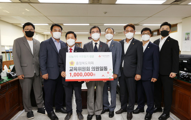 [충북 세계타임즈=이현진 기자] 충북도의회 교육위원회(위원장 김현문)는 21일 교육위원회 위원실에서 불우이웃돕기 성금 100만원을 사회복지공동모금회에 전달했다.