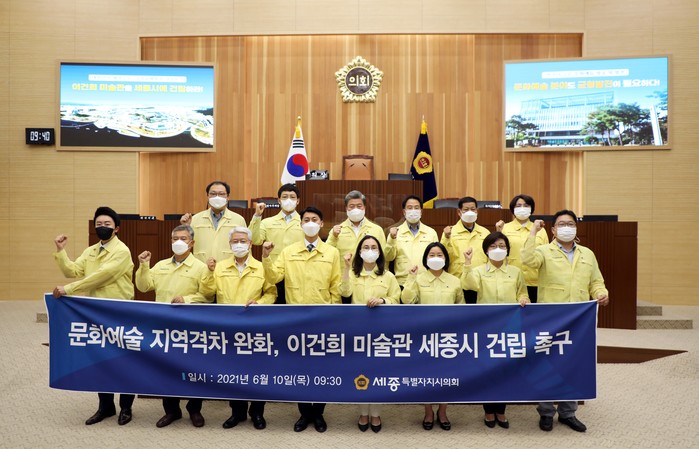 이날 세종시의회 의원 전원은 ‘이건희 미술관 세종시 건립을 위한 건의문’을 발표하고 수도권에 집중된 문화예술 향유 기회를 전 국토로 분산 및 확대하기 위한 정부의 전향적인 결정이 절실하다는 입장을 표명했다.