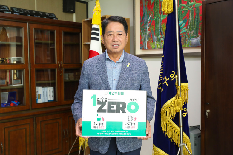 [계양구 세계타임즈=심하린 기자] 인천광역시 계양구의회 조양희 의장은 21일 ‘1회용품 제로 챌린지’에 동참했다.