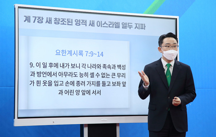 [세계타임즈 백진욱 기자] 신천지(신천지 예수교 증거장막성전)가 요한계시록의 성취를 알리기 위해 지난달부터 연 ‘하나님의 새 언약 계시록 예언과 성취 증거’ 세미나의 요한계시록 7장 강의가 1일 유튜브로 생중계됐다.