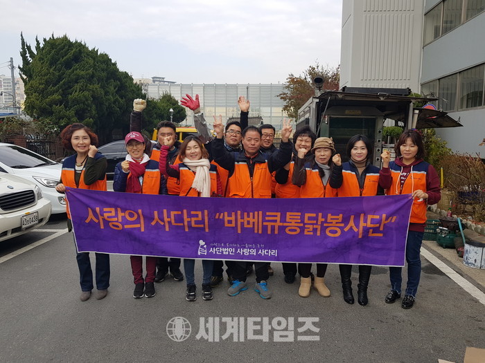 사랑의 사다리 밴드의 바베큐 통닭 봉사는 소외된 이웃을 위해서 1톤 트럭으로 현장에서 한달에 1~2회의 봉사를 하고 있다.