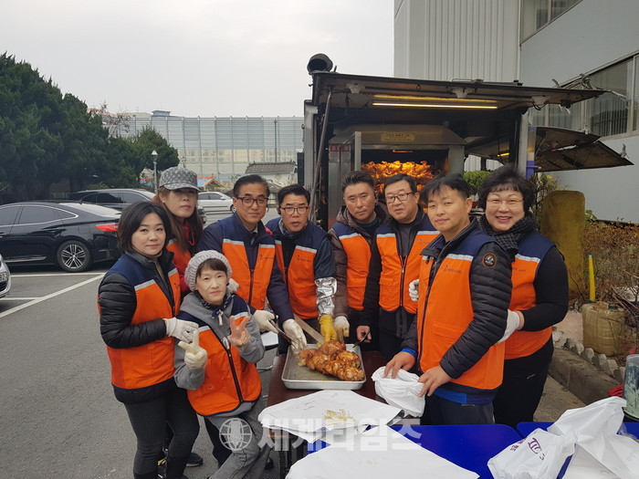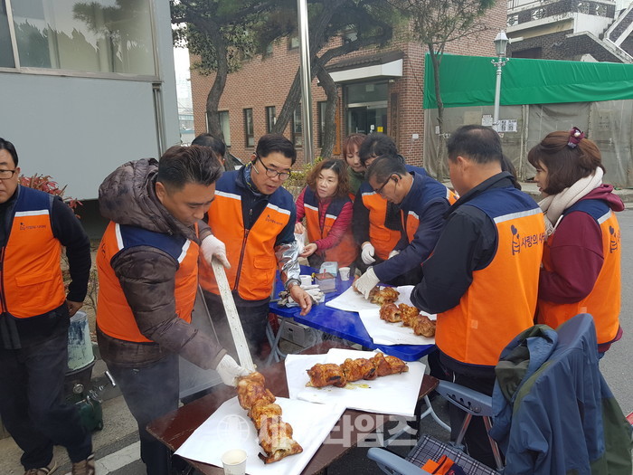 이날 봉사에는 신상일 통닭봉사 회장, 유희자 나눔봉사단장을 비롯해서 회원 30명이 추운날씨에도 통닭 봉사를 하였다.