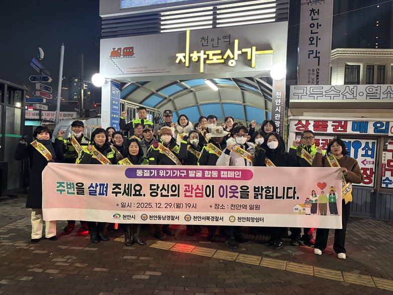 천안시는 겨울철 위기가구 발굴 활동을 지속적으로 추진하고, 유관기관과 협업을 통해 복지사각지대 해소와 시민 안전 확보에 적극 나설 계획이다.