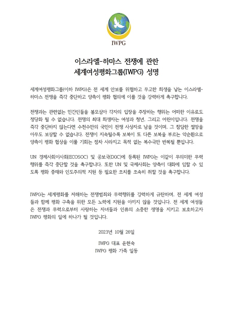 ※Attachment: ‘IWPG Statement on the Israe-Hamas War’