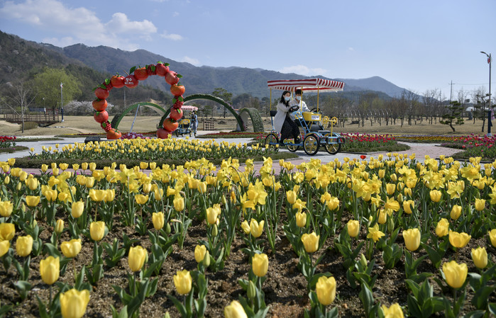 [장수=세계타임즈 임하영 기자] 전북 장수군 누리파크에 튤립이 만개해 사람들의 눈길을 끌고 있다.