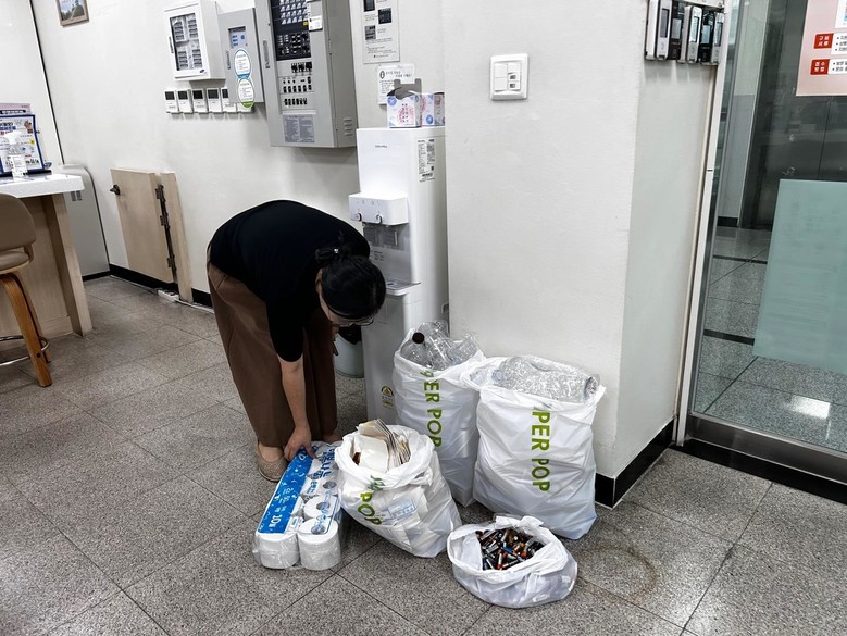 | ▲ 모은 재활용품 동행정복지센터에 전달함 |