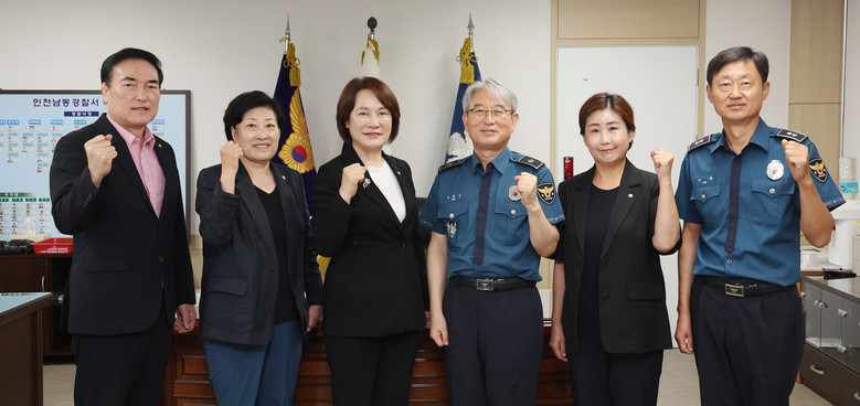 제9대 남동구의회 후반기 신임 의장으로 선출된 이정순 의장과 전유형 부의장, 서점원 의회운영위원장, 김은숙 사회도시위원장, 장덕수 윤리특별위원장이 참석해 각 기관의 운영 현황과 현안 사항을 청취하고 의회 운영 방향을 공유했다.