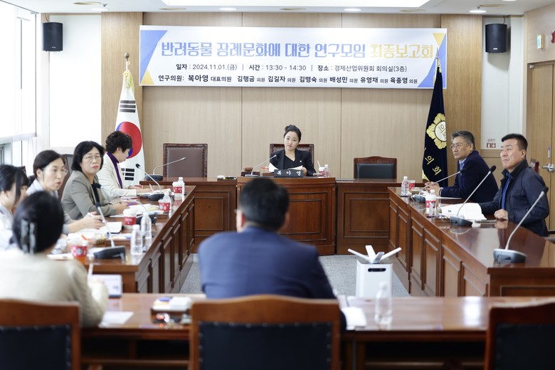 [천안시 세계타임즈=백택기 기자] 천안시의회(의장 김행금)는 지난 1일 경제산업위원회 회의실에서 '반려동물 장례문화에 대한 연구모임(대표 의원 복아영)' 최종보고회를 개최하고, 그간의 연구 활동과 정책연구용역 결과를 발표했다.