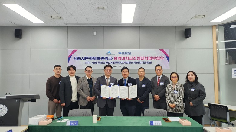 시는 26일 홍익대(세종캠)에서 시 문화체육관광국과 홍익대 조형대학이 라이즈(RISE) 사업을 통한 지역 문화유산의 디지털콘텐츠 개발·구축 업무협약을 체결했다고 밝혔다.