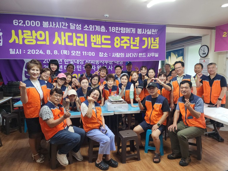 [대전 세계타임즈=이채봉 기자] 대전지역 소외계층을 위해서 매월 15회~20회 다양한 봉사활동을 하고 있는 ‘사랑의 사다리 밴드’가 8일 창립 8주년을 맞았다.