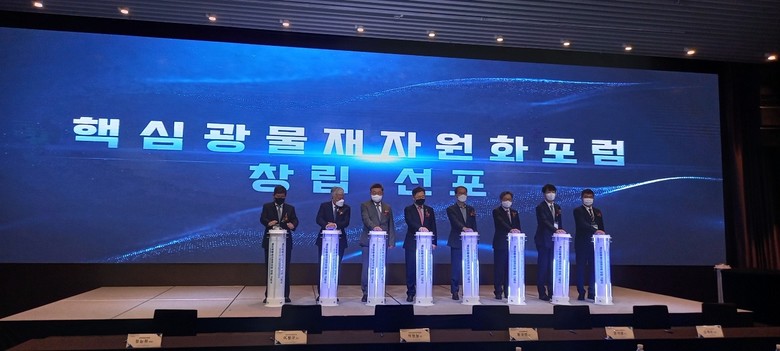 한국광해광업공단(사장 황규연, 이하 ‘KOMIR’)은 18일 여의도 글래드호텔에서 산업부, KOMIR, 한국금속재자원산업협회, 한국비철금속협회, 한국에너지기술평가원, 한국지질자원연구원, 한국생산기술연구원, 한국자원리싸이클링학회 등 정부 및 7개 전문기관이 참여하는 민관 핵심광물재자원화포럼 창립 기념식을 가졌다고 밝혔다.