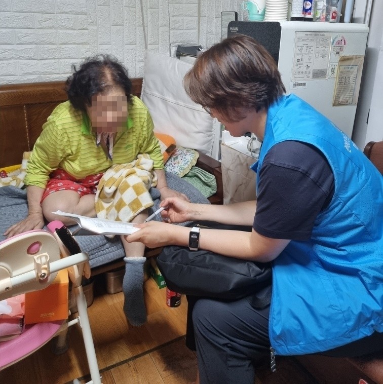 | ▲ 관악구 퇴원환자 전담케어 매니저가 대상자 집에 방문하여 설명하고 있는 모습 |