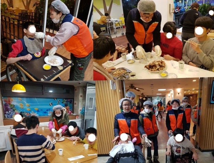이날 통닭봉사에는 신상일 단장, 유희자 단장. 박재우 감사를 비롯한 회원 20명이 참석을 해서 오후3시 간식시간에 통닭을 전달하였다.