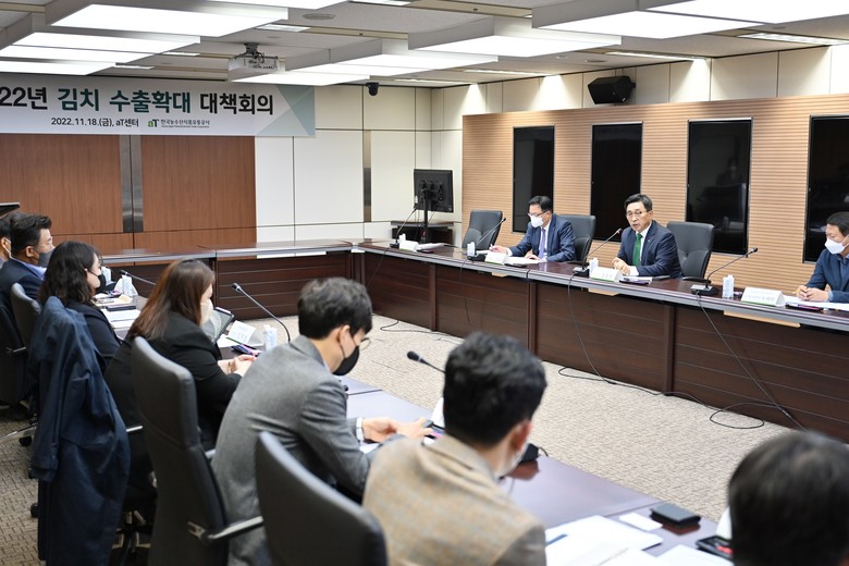 [세계타임즈 = 이현진 기자] 한국농수산식품유통공사(사장 김춘진)는 K-푸드 대표선수 김치의 수출 활성화를 위해 18일 서울 양재동 aT센터에서 국내 주요 김치 수출업체와 함께 ‘김치 수출확대 대책회의’를 개최했다.