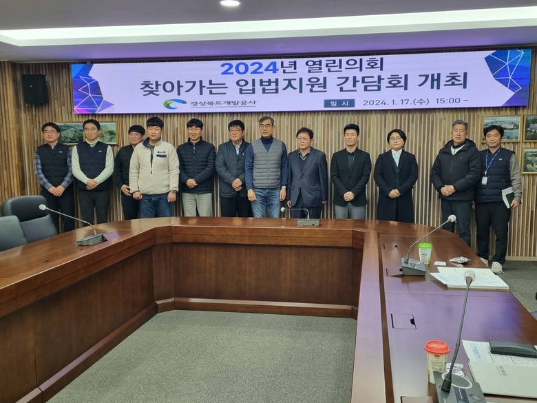 1월 17일 경상북도개발공사(예천)를 찾아 부서별 실무자들로부터 노동이사제 도입, 신재생에너지 사업, 직원 자기계발 학습지원, 공사채 발행 계획, ESG 경영, 임금피크제, 은퇴과학자 마을 조성사업 등 업무 전반에 대한 의견을 청취했다.