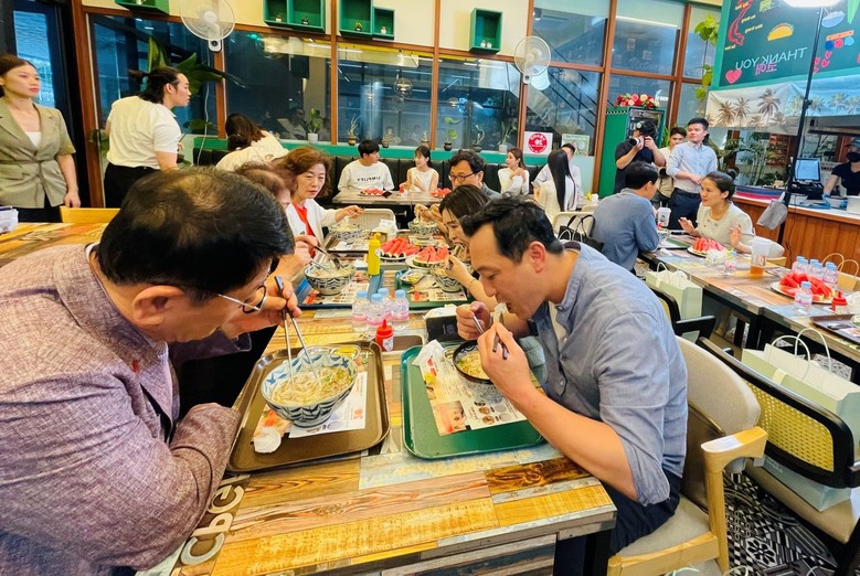 | ▲기자회견을 마치고 쌀국수 시식을 하고 있다. |