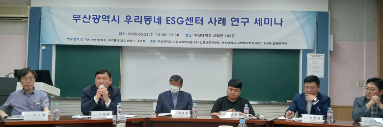 [부산 세계타임즈=이용우 기자] 부산대학교 사회과학연구원 50+신중년연구센터와 사회복지학과 BK21 FOUR 교육연구단이 주관하는 ‘우리동네 ESG센터 사례 연구 세미나’가 5월 21일 오후 3시, 부산대학교 사회관에서 개최되었다.