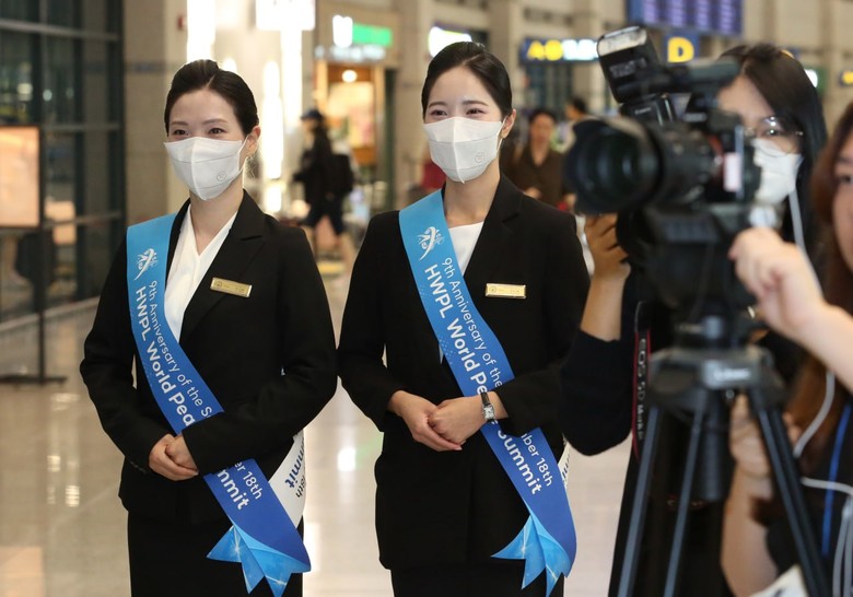 [세계타임즈 = 백진욱 기자] HWPL이 주최하는 9·18 평화만국회의 제9주년 기념식이 오는 18일부터 개최되는 가운데, 17일 오전 인천국제공항에서 HWPL 공항의전 봉사자들이 인사의 입국 안내를 위해 도열하고 있다.