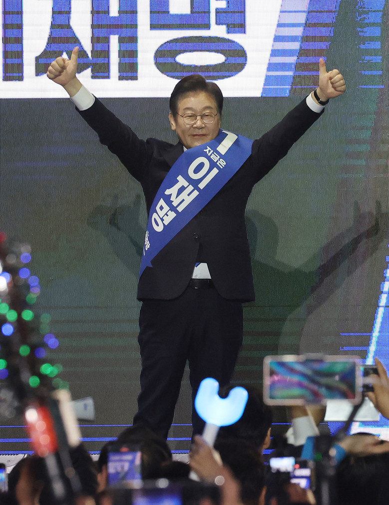 [세계타임즈 = 심귀영 기자] 더불어민주당 이재명 대선 경선 후보가 20일 울산시 울주군 울산전시컨벤션센터에서 열린 '제21대 대통령선거 후보자 선출을 위한 영남권 합동연설회'에서 인사하고 있다. 2025.4.20