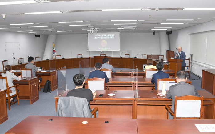 [광주=세계타임즈 손권일 기자] 광주광역시의회 그린뉴딜특별위원회(위원장 김광란)는 9월17일 오전 시의회 5층 예산결산특별위원회 회의실에서 '광주그린뉴딜포럼' 첫 세미나를 개최했다