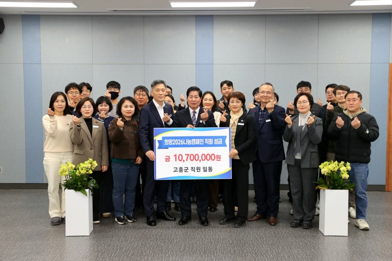 [고흥군 세계타임즈=우덕현 기자] 고흥군(군수 공영민)은 30일 연말연시를 맞아 지역 내 어려운 이웃을 돕기 위한 ‘희망 2026 나눔 캠페인’ 직원 성금 1,070만 원을 모금해 기탁했다고 밝혔다.