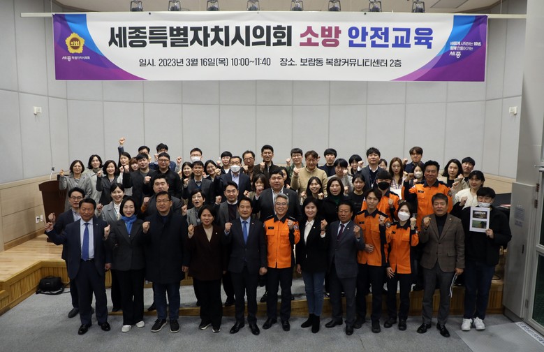 세종시의회 의원 20명과 의회사무처 직원 30여명은 이날 소화기·옥내 소화전 사용법과 화재 대피 완강기 사용법, 심폐소생술 및 자동심장충격기와 관련된 이론 및 실습에 대해 교육받았다.