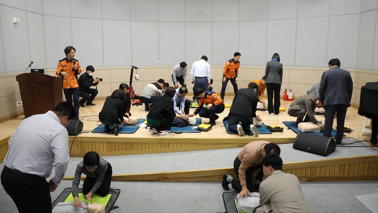 [세종 세계타임즈=이채봉 기자] 세종특별자치시의회(의장 상병헌)는 16일 보람동 복합커뮤니티센터 다목적 강당에서 심폐소생술과 자동심장충격기 사용법 등 이론 및 실습을 병행한 소방 안전 교육을 실시했다.