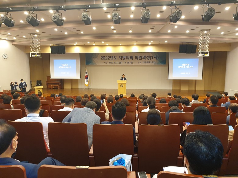 [세종 세계타임즈=이채봉 기자] 세종특별자치시의회(의장 상병헌)가 하반기 두 차례 정례회를 앞두고 의정활동 역량 강화를 위한 교육의 일환으로 지난 22일부터 26일까지 4박 5일 동안 국회도서관 대강당에서 국회사무처 주관으로 열리는 ‘2022년 지방의회 의원 연수’에 참여한다.
