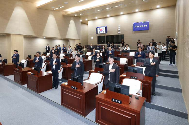 정재천 의장은 개회사를 통해 “올여름 기록적인 폭염에 대비하여 동작구의회는 모든 재난 상황에서 소외되는 구민이 없도록 세심히 살피고 대응하겠다”고 말했다. 이어 지난 7월 구청장이 의회에 설명이나 알림 없이 국외출장을 다녀온 사실을 지적하며 “집행부에서는 주민을 대표하는 기관인 의회와 소통을 강화하고 구민 안전을 최우선으로 해달라”고 당부했다. 또한, “이번 임시회는 신청사 이전 후 처음 열리는 뜻깊은 회의로, 새로운 각오로 의정활동을 펼쳐 나갈 것”을 다짐했다.
