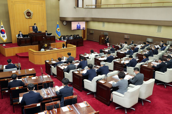 박문희 의장은 개회사를 통해 “올 여름 폭염에도 코로나19 방역 최전선에서 헌신적으로 활동해 주시는 의료진과 방역 관계자, 도·시군 공직자 등 모두에게 진심으로 고맙다는 말씀을 드린다“ 면서 “코로나19로 민생경제가 위협받는 매우 힘든 시기를 보내고 있는 만큼, 집행기관에서는 9월 6일부터 신청.지원하는「코로나 상생 국민지원금」사전준비에 철저를 기해달라“고 당부했다.