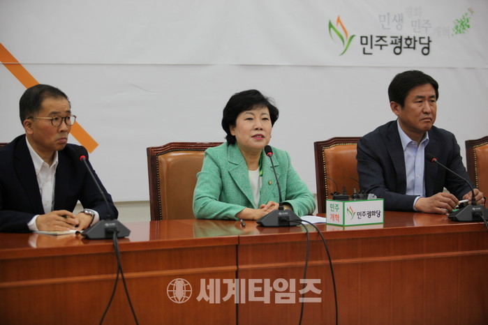 조배숙 대표 저희들도 그 문제에 있어서는 철저히 을인 것 같다. 결국 바른미래당에서 정치적인 결단을 해야 하는 문제이다. 바른미래당 쪽에서 정치적인 이해득실을 따져서 이에 응하지 않고 있다. 저희들은 이 부분에 있이서는 저희들은 계속 출당을 요구하고 촉구할 예정이다. 결국 결정권을 가진 쪽은 현재로서는 바른미래당이다. 그 쪽에서 결단해야하는데 저희들도 좀 답답하다.