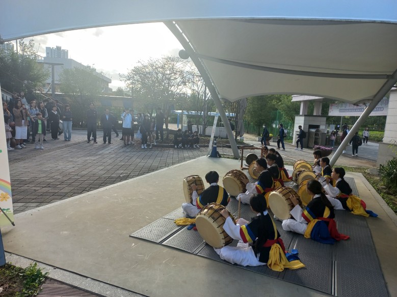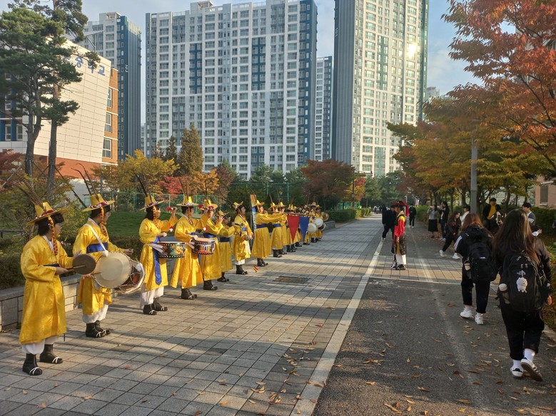 배곧초등학교 국악단 풍물부 학생 11명은 10월 17일 배곧중학교에서 ‘삼도 사물놀이’를 연주하여 우리 전통 국악의 흥겨운 장단을 알리며 배곧중학교 재학생들의 열렬한 환호와 박수를 받았다.
