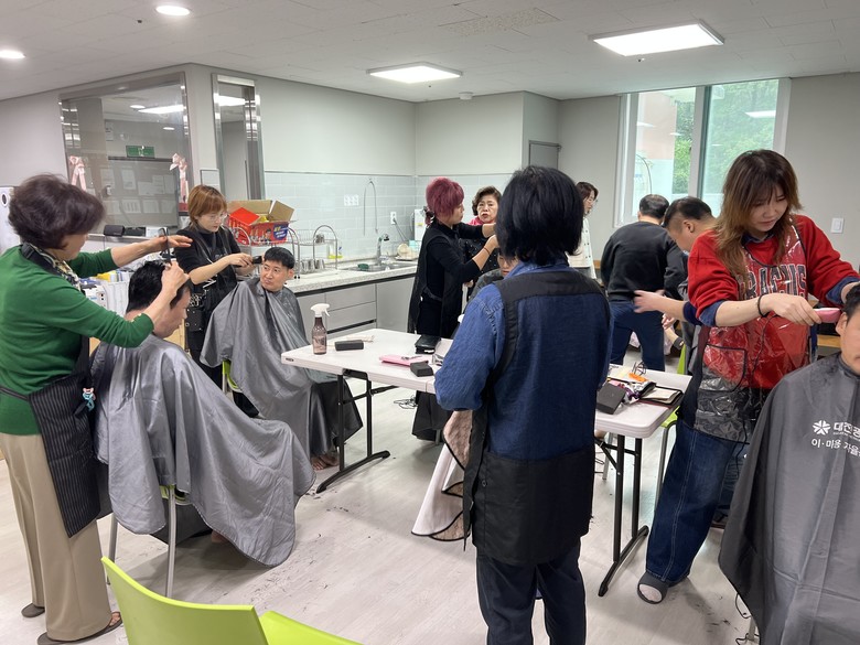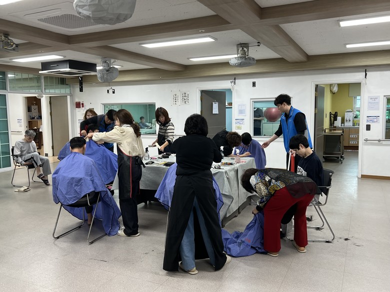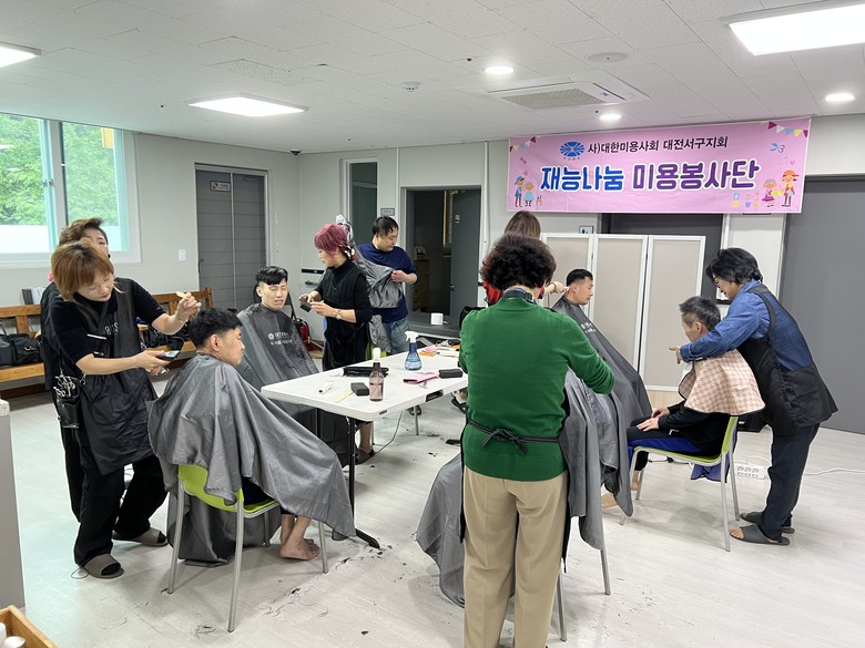 이날 (사)대한미용사회 대전서구지회 소속 미용사 20여 명은 거동이 불편한 시설 이용자들의 머리를 다듬으며 말벗이 되어 주었다. 이들은 매월 150여 명 이상의 이웃에게 미용 봉사를 실천하고 있다.