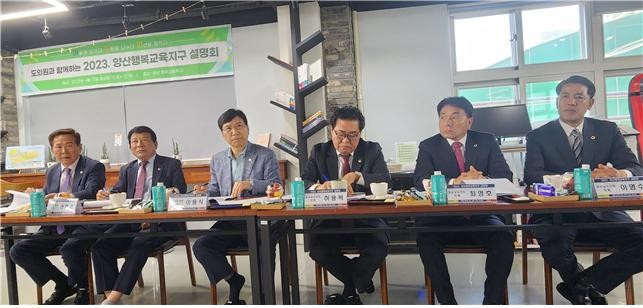 [경남 세계타임즈=최성룡 기자] 경상남도교육청 양산교육지원청(교육장 조영선)은 17일 오전 양산 신기초등학교 내 양산행복마을학교에서 이용식(양산 1, 국민의힘), 이영수(양산 2, 국민의힘), 최영호(양산 3, 국민의힘), 권혁준(양산 4, 국민의힘), 박인(양산 5, 국민의힘), 허용복(양산 6, 국민의힘) 도의원을 초청, 교육청 관계자들과 함께 2023 양산행복교육지구 설명회를 개최했다.
