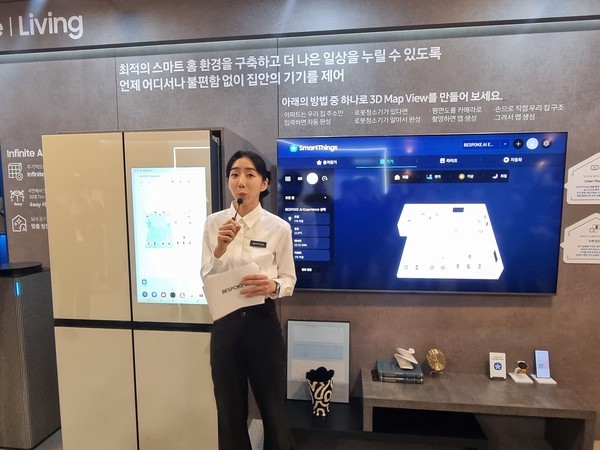이 밖에도 이번 행사에서 '3차원 맵뷰'가 공개됐다. 비스포크 AI 스팀 로봇청소기가 5개의 센서를 통해 집 안 구조를 분석, 집안 지도를 스마트폰에 보여준다. 지도를 통해 집 안에 어떤 기기가 있는지 확인하고 기기를 직접 콘트롤할 수 있었다.
