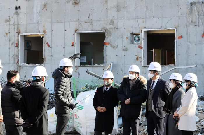 이날 도의회는 최근 광주 아파트 붕괴사고 등 재난사고 발생과 중대재해처벌법 시행에 따른 안전시설물의 구조 및 설치요건을 점검하고 안전을 최우선으로 꼼꼼한 시공을 당부했다.