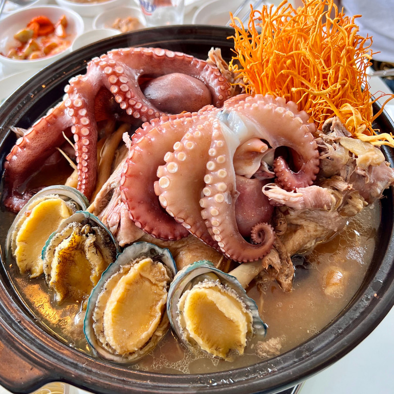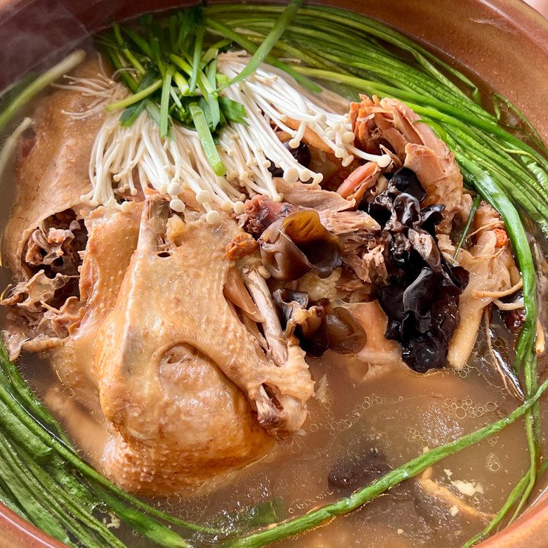 그리고 압력솥에 오리,대추, 인삼, 녹각, 감초, 마늘을 넣어 1시간 정도 끓인다.이 집의 메인요리 ‘약선 또 오리’능이백숙‘은 잡내가 하나도 없고 야들 보들보들한 고기가 식감이 좋아 어르신이나 어린이들도 좋아한다.