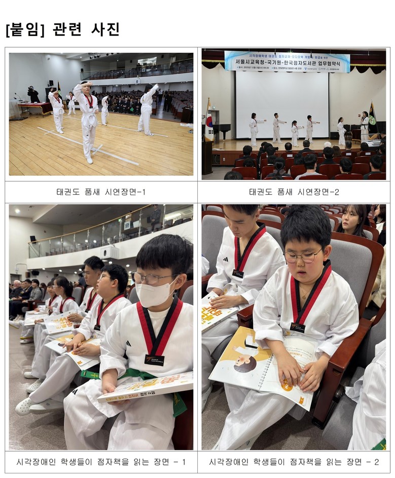 서울시교육청은 이번 우수사례 수상작인 ‘손끝으로 배우는 태권도’의 점자 교본과 오디오북을 전국 시각장애 특수학교 및 관련 기관에 배포하여, 캠페인의 성과가 일회성에 그치지 않고 전국 단위로 확산될 수 있도록 후속 지원을 이어갈 계획이다.