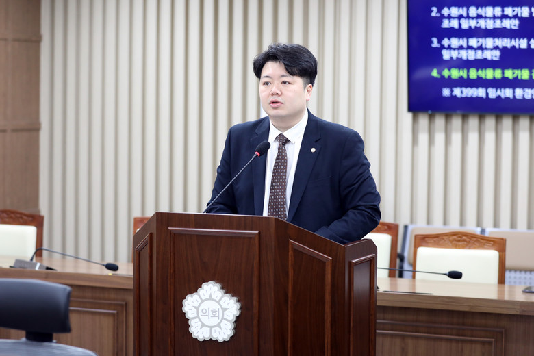[수원시 세계타임즈=송민수 기자] 수원특례시의회는 배지환 의원(국민의힘, 매탄1·2·3·4)이 대표 발의한 「수원시 음식물류 폐기물 감량기기 설치 및 지원 조례 일부개정조례안」이 9일(월) 열린 제399회 임시회 환경안전위원회 안건심사에서 원안 가결됐다고 밝혔다.