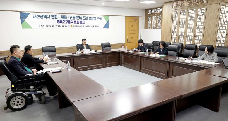 [대전 세계타임즈=이채봉 기자] 대전시의회 의원연구회 ‘더 좋은 조례 연구회’(회장 김영삼 의원)는 17일 시의회 공감실에서 「대전광역시 문화·체육·관광 분야 조례 정합성 분석 연구」 최종보고회를 개최했다.