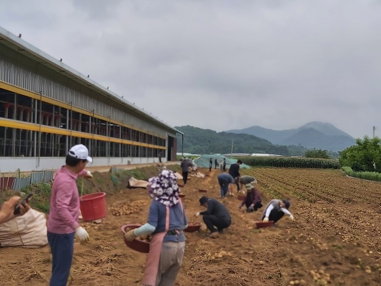 직원들은 농장주로부터 감자 수확에 관한 설명을 들은 후 600평 정도의 밭에서 구슬땀을 흘리며 감자 수확을 함께 했다.