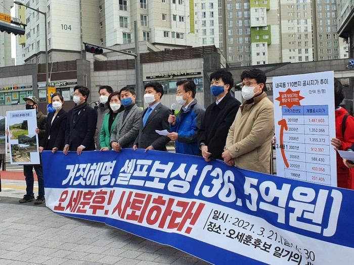 [세계타임즈 심귀영 기자]국민의힘 오세훈 후보, 내곡동 땅으로 이익을 본 게 없고 오히려 손해를 보았다고 주장하는 근거가 도대체 무엇입니까?