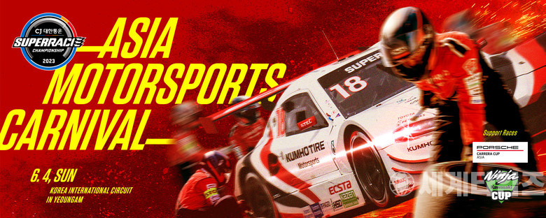 6월 4일(일) 전라남도 영암군에 위치한 코리아 인터내셔널 서킷(KIC)에서 ‘아시아 모터스포츠 카니발’이 개최된다. 이 대회에서는 다양한 모터스포츠 경기를 즐길 수 있다. 국내 모터스포츠를 대표하는 2023 CJ대한통운 슈퍼레이스 챔피언십(슈퍼 6000 클래스, GT 클래스, M 클래스, 스포츠 프로토타입 컵 코리아)을 비롯해, 포르쉐 911 GT3 CUP(3,996cc, 510마력)으로 진행되는 국제 원메이크 경기 ‘포르쉐 카레라 컵 아시아’와 바이크 경기인 ‘가와사키 닌자 컵’까지 한 번에 만나볼 수 있다.